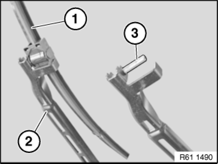 If the specified number in degrees is not correct, the wiper arm (1) must be bent with the special tool 61 6 110 at the point shown.