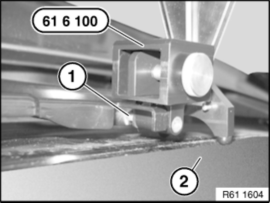 Place special tool 61 6 100 on windscreen (2) and read off value in degrees on scale.