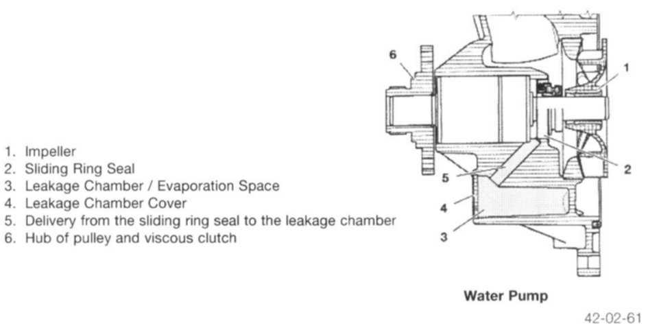 NOTE: In the past, fully functional water pumps were often replaced because the functional sliding ring seal leakage which is necessary for water pump operation resulted in evaporation residues being left on the external walls of the water pump.
