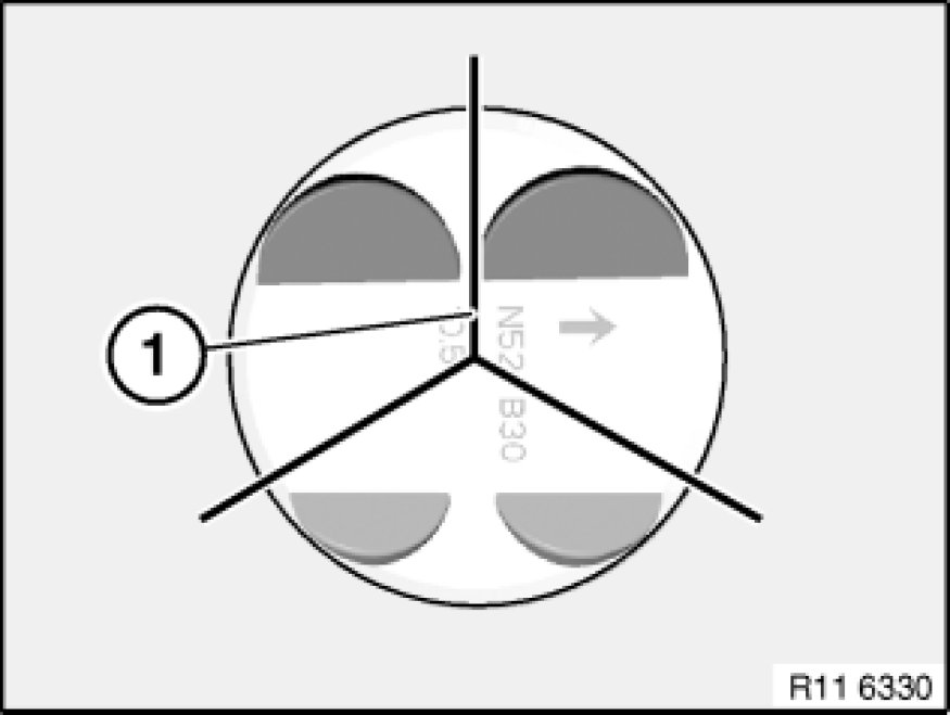 Conrod of cylinder 1 to 4 is installed in direction of travel, see arrow (1), front.
