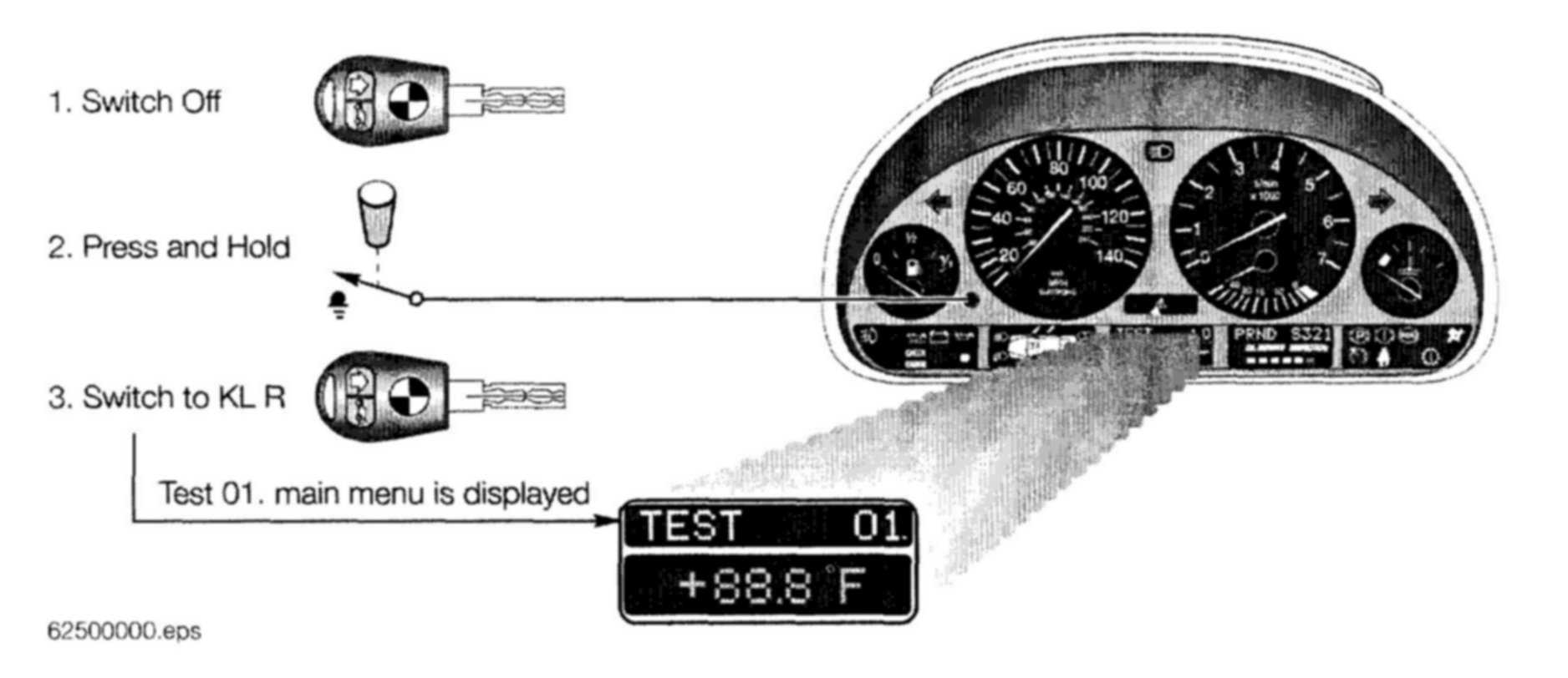 In addition to the Diagnosis Program, the instrument clusters contain their own internal self test that can be accessed to check various functions and values. The test functions are displayed in the mileage LCD block. There are a total of 21 possible test functions.