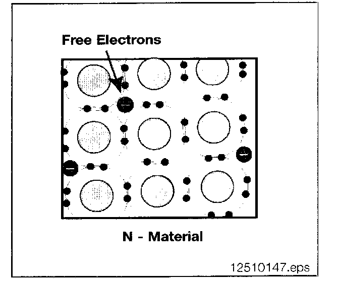 This type of doped material is called negative or N-material, because it already has excess electrons and will repel additional negative charges.
