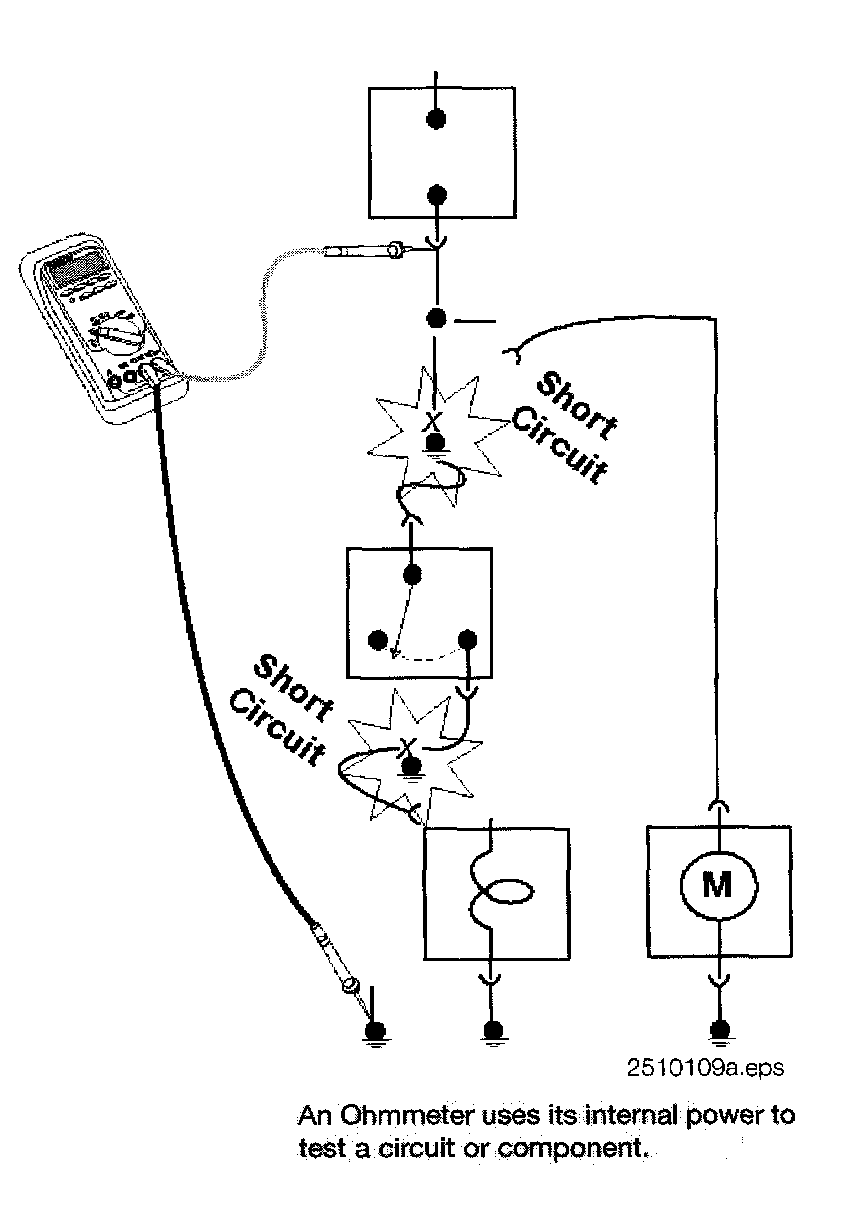 NOTE: There must be NO current available to the circuit during the resistance (Ohmic) test.