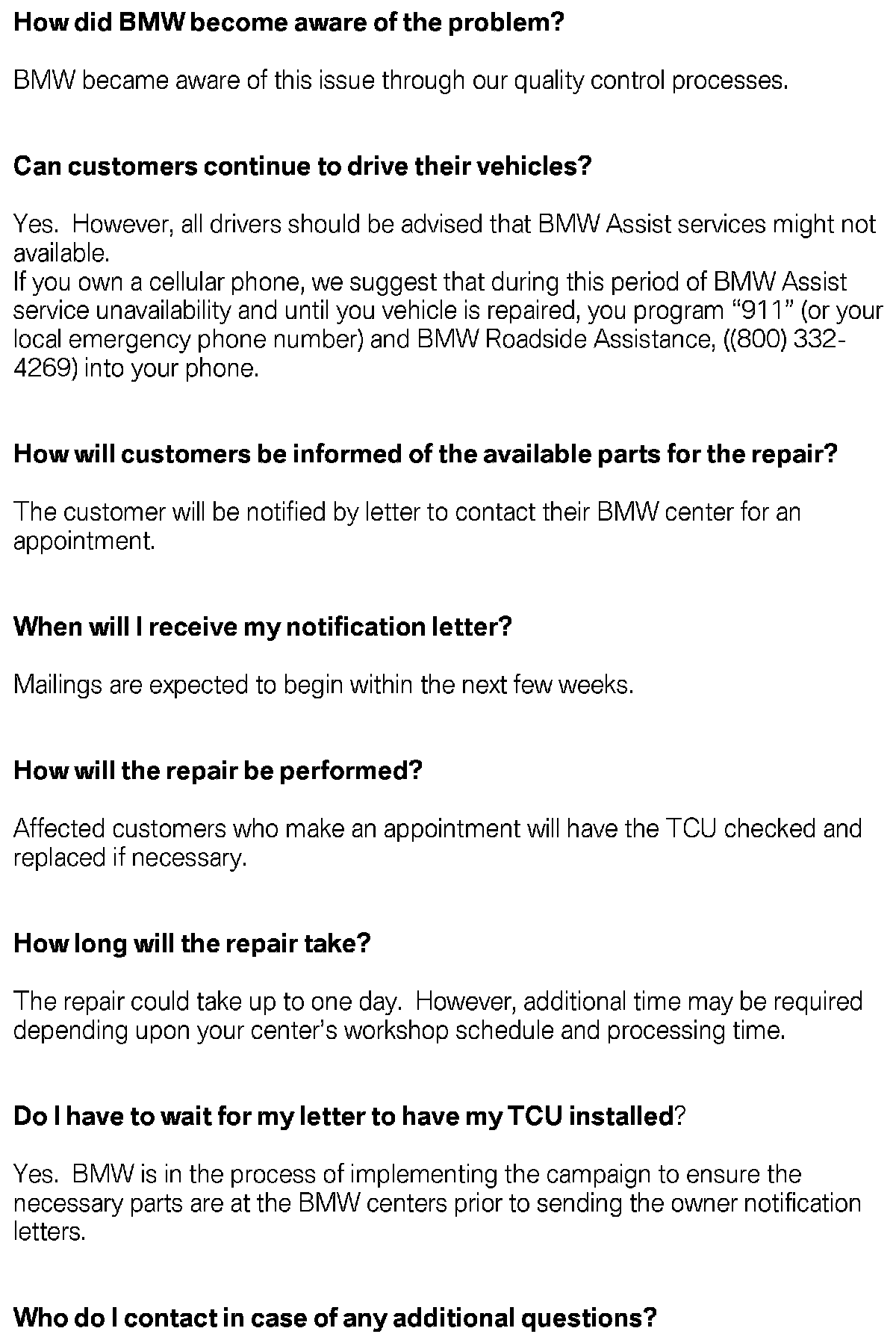 Campaign - Telematics Control Unit (TCU), MOST Bus
