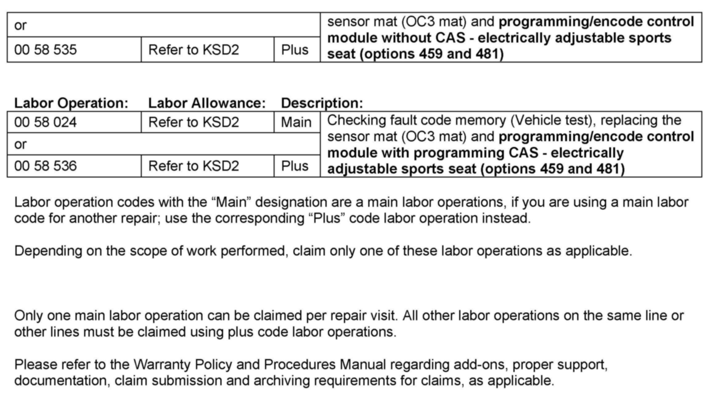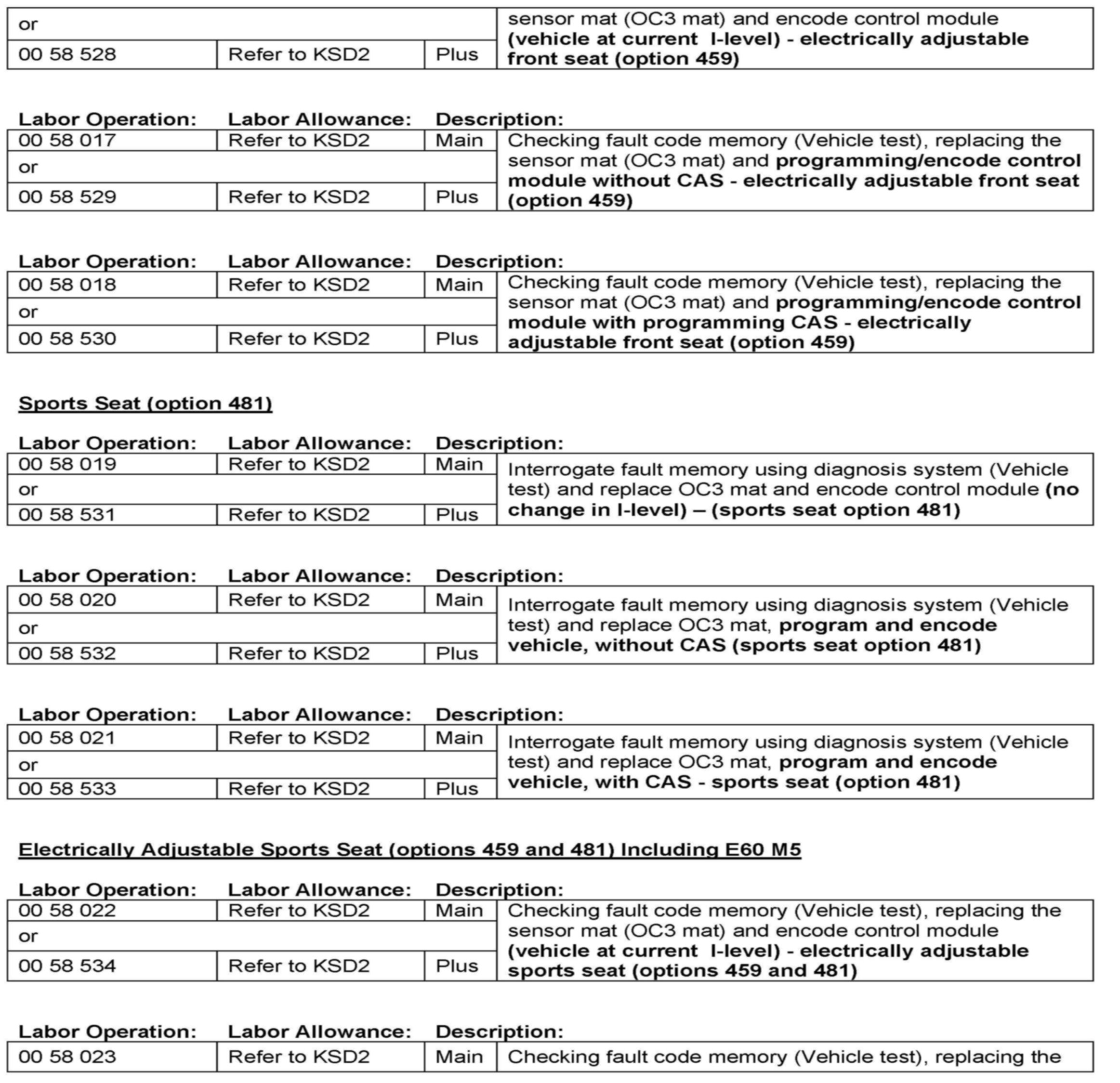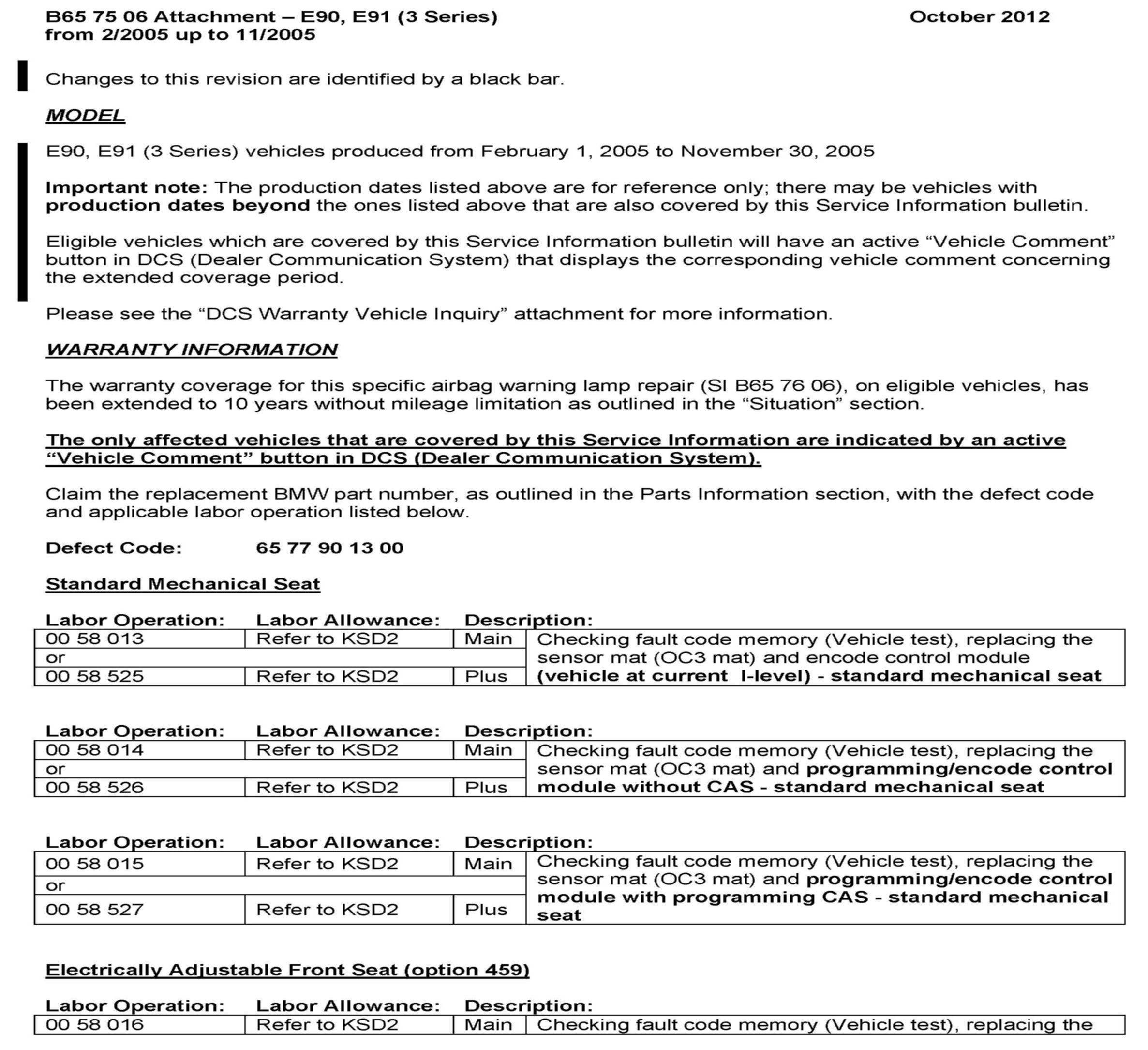 Campaign - Air Bag Warning Lamp For OC3 Seat Mat Fault