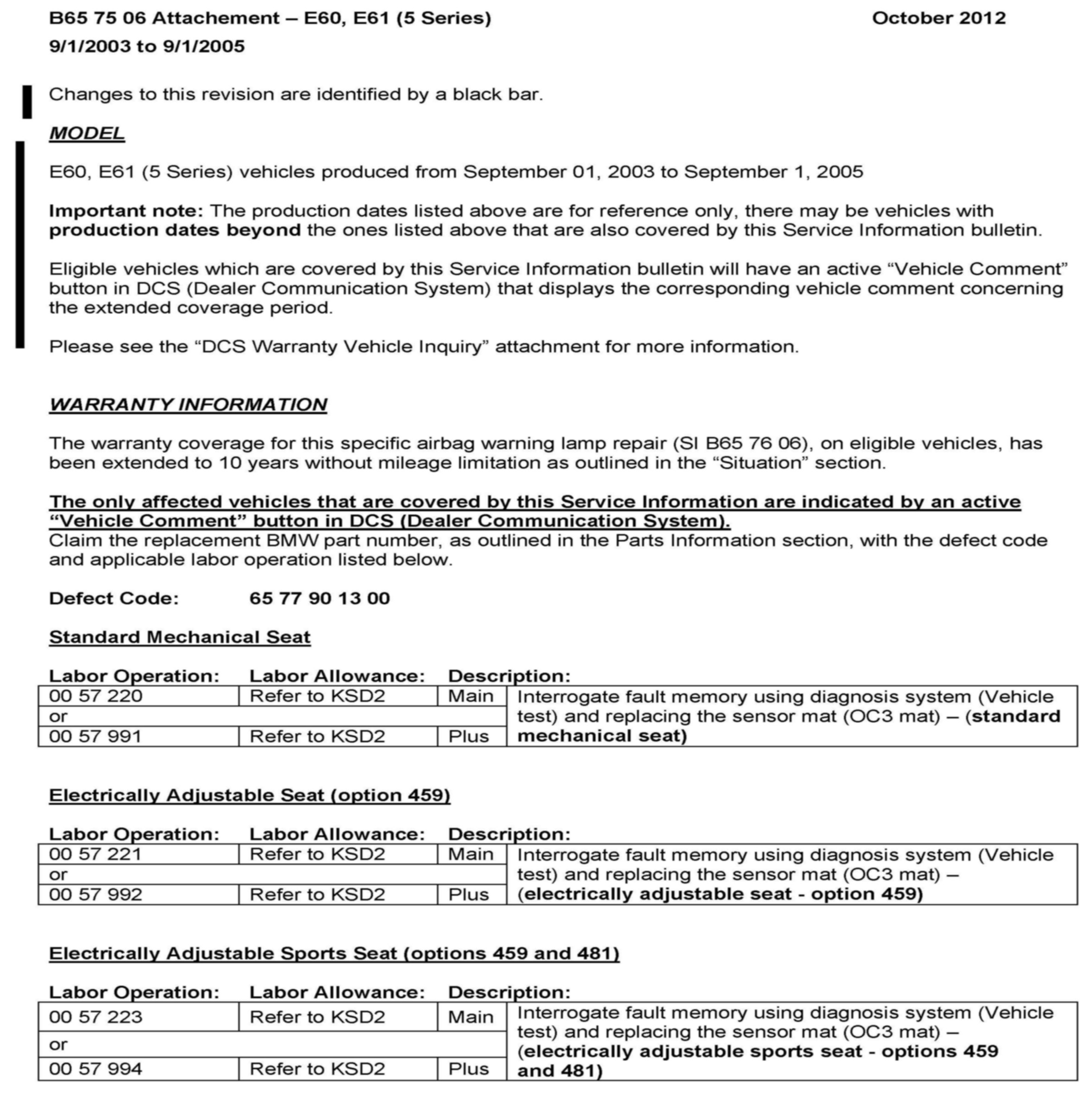 E60, E61 (5 Series) 9/1/2003 to 9/1/2005