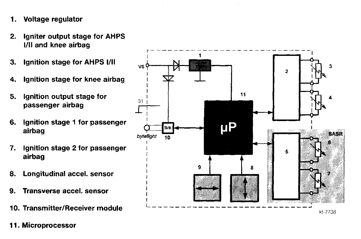The SASR is responsible for deploying the passenger airbag, the AHPS I/II and the passenger knee airbag.