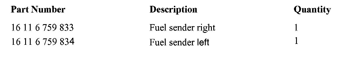 5. [NEW] If the fuel sender related fault(s) are currently not present, and the fault frequency is 3, or higher, then replace the affected fuel sender unit with the improved part (PN 16 11 6 759 833 right side, or PN 16 11 6 759 834 left side) and clear DME and Instrument Cluster fault memories. The optimized fuel sending units feature an increased spring tension between a resistor card and sensor contacts. The improved senders are recognized by the production date ("280705", or higher) stamped on top of the mounting flange (left unit), or inside the mounting arm (right sending unit).