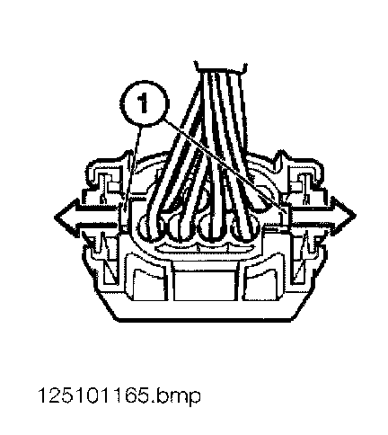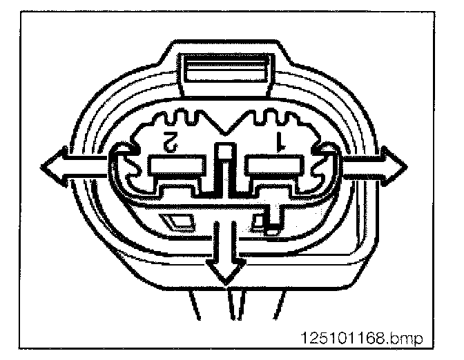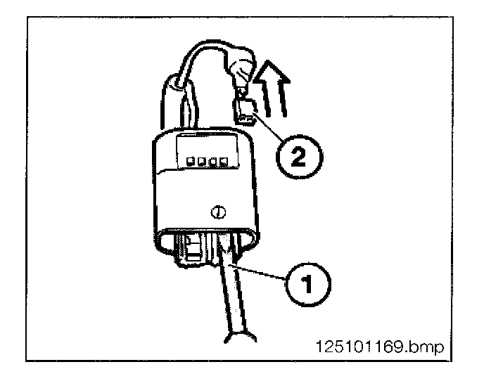 - Press back retaining hook of MQS contacts (2) with special tool 61 1 134 and pull out cable with contact.