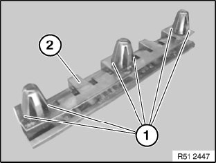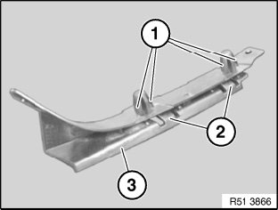 Catches (1 and 2) on bracket (3) must not be damaged.