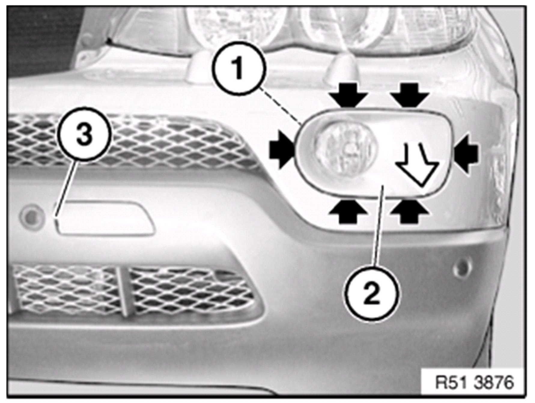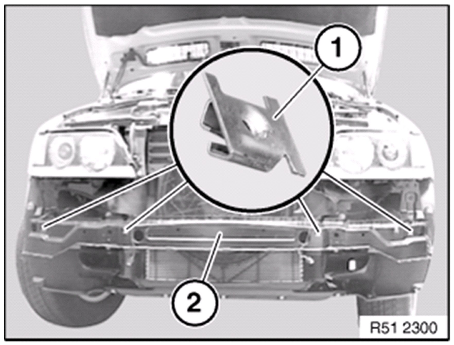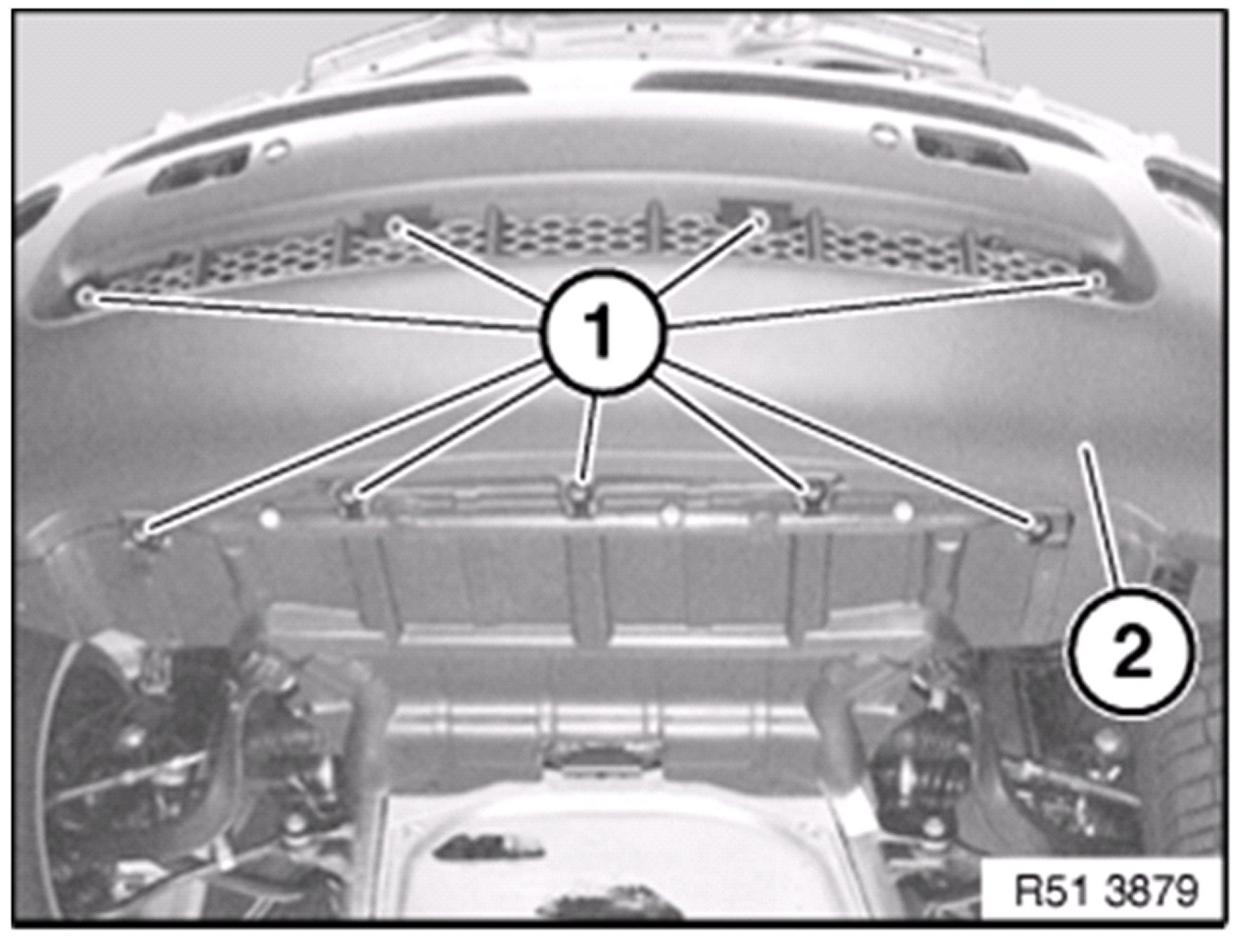 Release screws ( 1 ) on bumper trim ( 2 ).