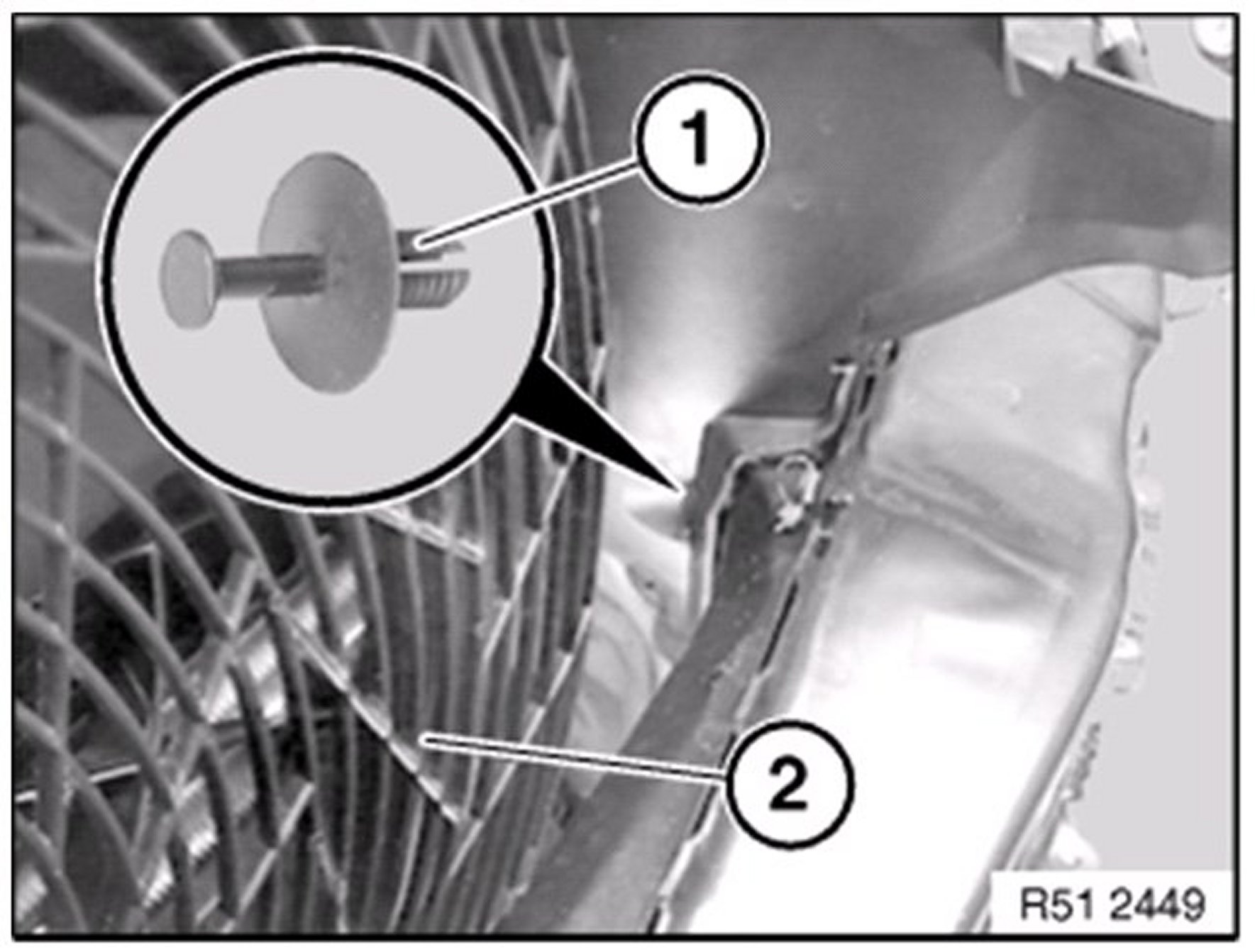 Release expander rivet ( 1 ) from fan impeller ( 2 ).