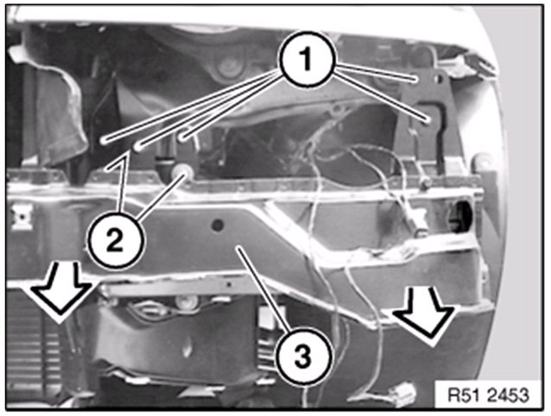 Release nuts ( 2 ) and remove member ( 3 ) towards front.