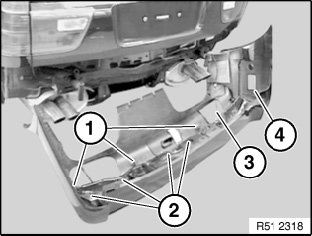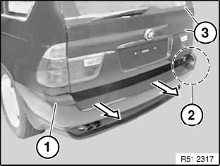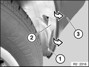 Lever out trim (2) on wheel arch on left/right and pull off bumper (3).