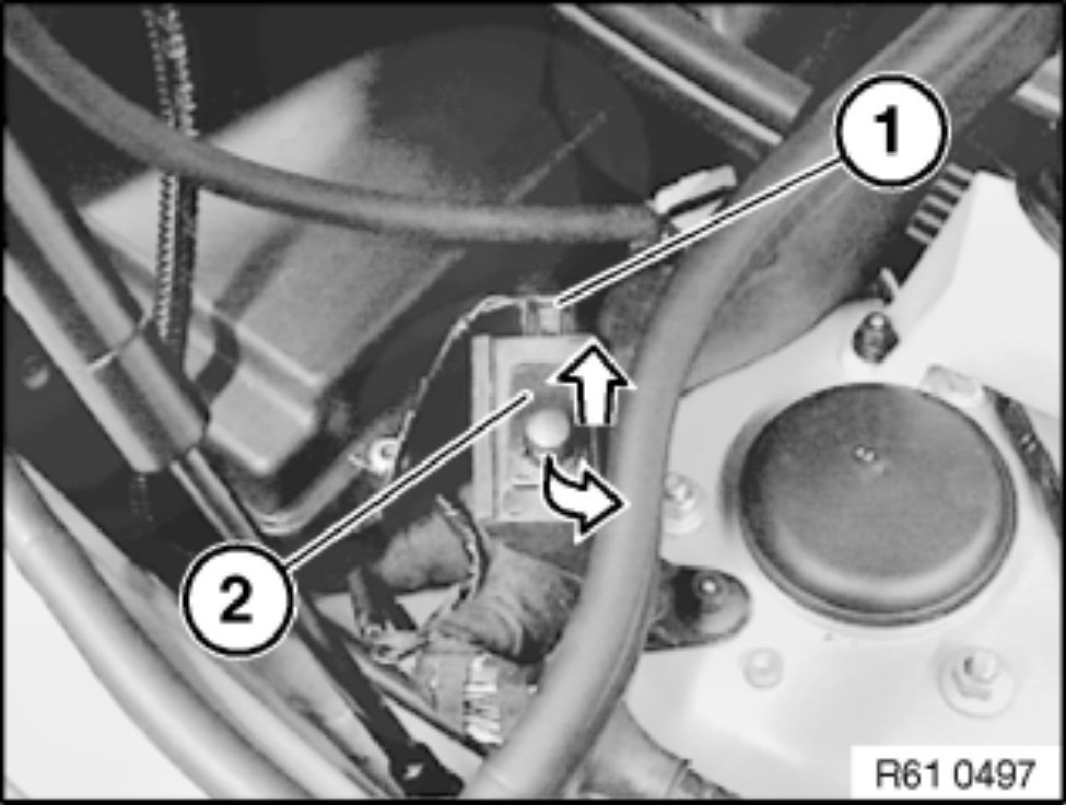 Move engine hood contact switch (2) in direction of arrow and pull out.