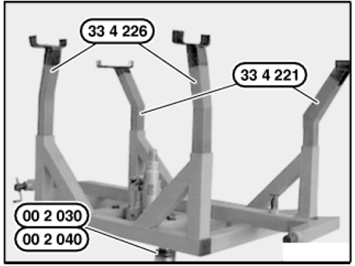 Insert special tools 33 4 226 and 33 4 221 into corresponding mountings of special tool 00 2 040.
