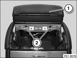 Release screws (2) and feed out function carrier with centre armrest (1) in upwards direction.