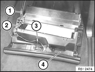 Feed cable (2) out of holder (3) and remove glovebox (4).