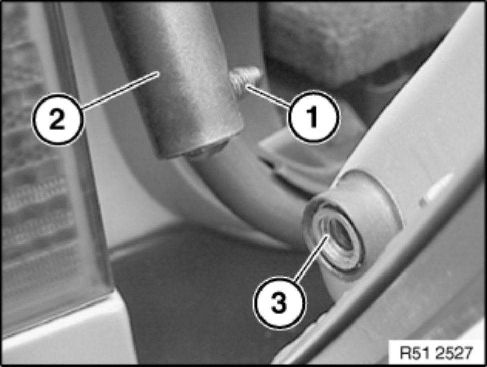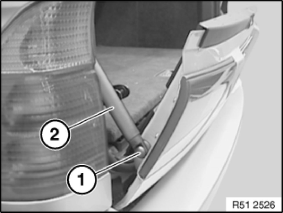 CAUTION: If the second support (2) is released for removal of the rear lid, the rear bumper must be protected against damage.