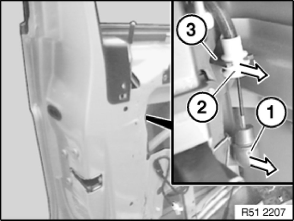 Lift out lock (1) and detach Bowden cable (2) from fixture (3).