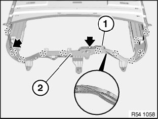 Feed cross-member (2) out of wiring harness (1) during removal.
