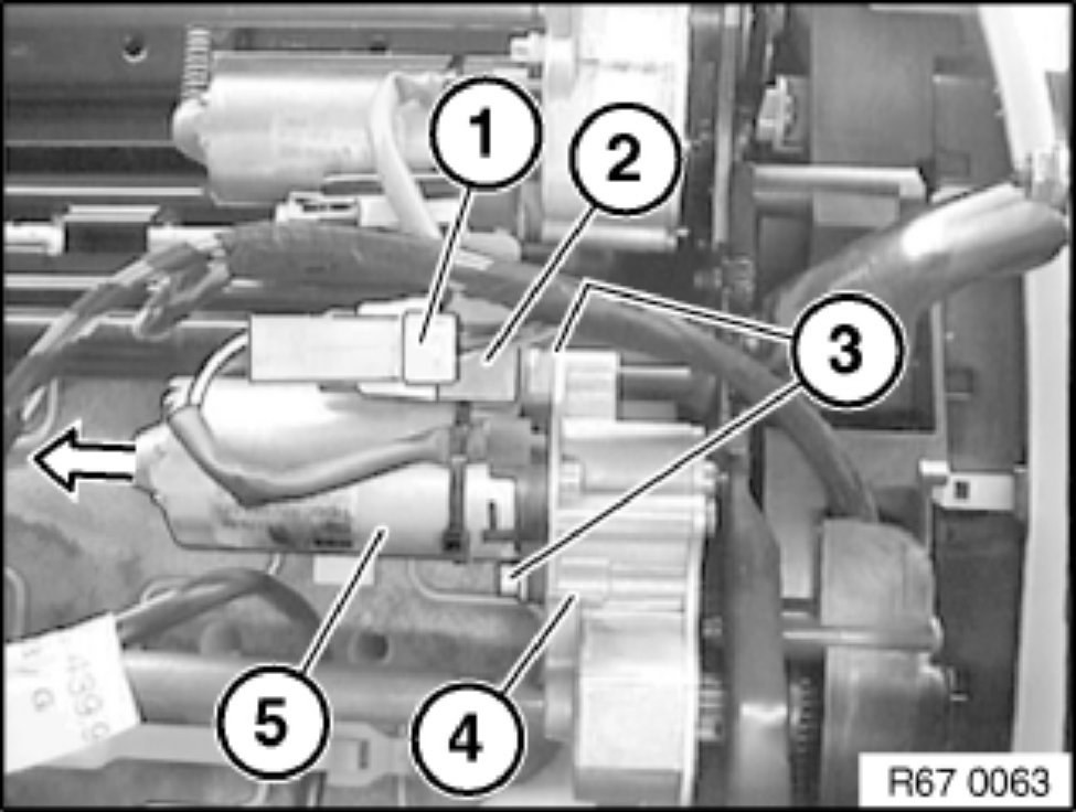Remove drive for backrest angle adjustment (5) with fixture for plug connection (2) in direction of arrow from flange (4).