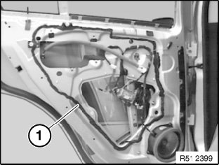 In event of replacement or partial detachment, lay butylene tape (sourcing reference: BMW Parts Service) on inner door plate or sound insulation.