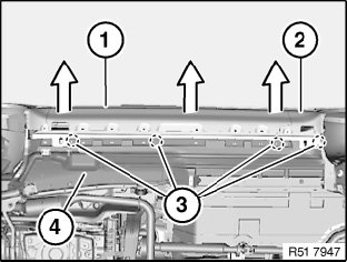 Press sill cover (1) and wheel arch trim (2) outwards and release screws (3) underneath.