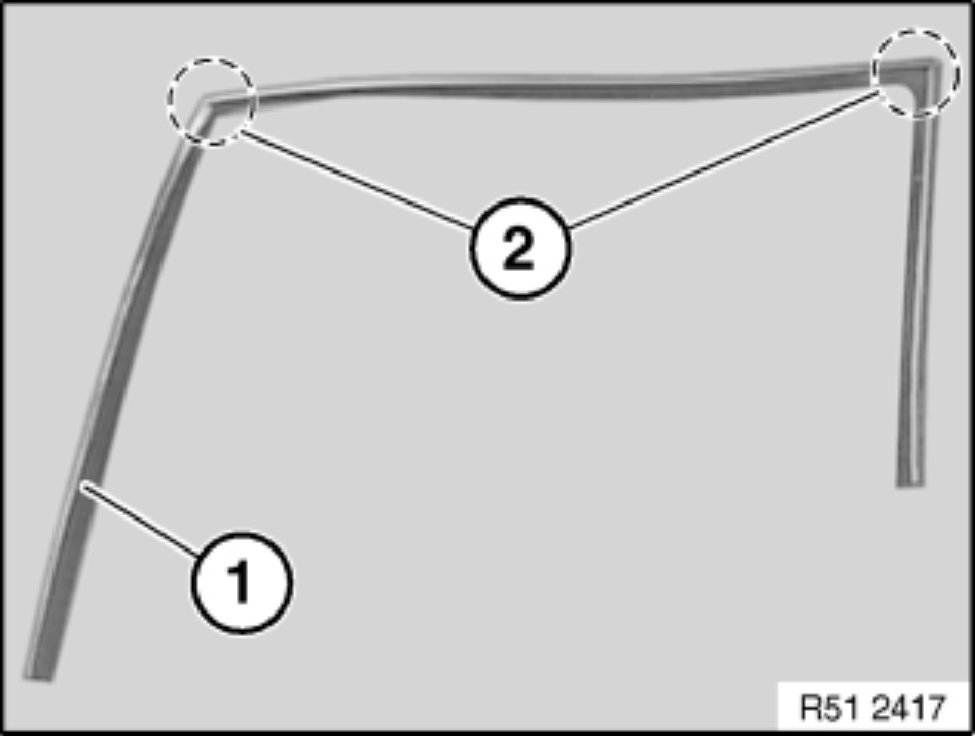 For installation, coat window cavity seal (1) with turpentine substitute (sourcing reference: BMW Parts Service).