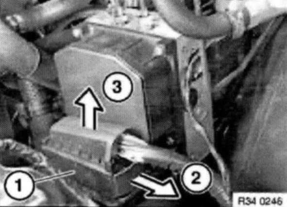 If necessary, detach auxiliary water pump with holder from body. Disconnect electric connection and press auxiliary water pump to one side.