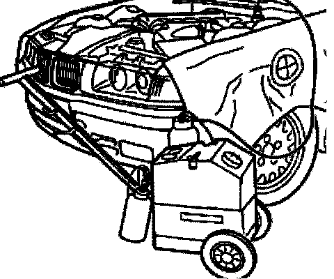 After work has been carried out on the precharging pump, only the front-axle brake circuit has to be bled. Before flushing the brake system, activate the precharging pump once with the Diagnosis and Information System (DIS) (bleeder unit connected with max. 2 bar filling pressure).