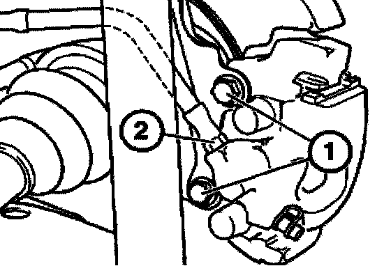 Loosen screws (1). Disconnect brake hose (2).