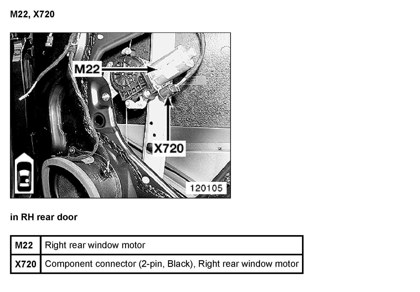 X720 Connector, Power-Window Motor, Rear Right