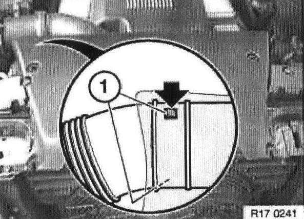 Intake pipe is secured in intake hood by means of two locking lugs (1).