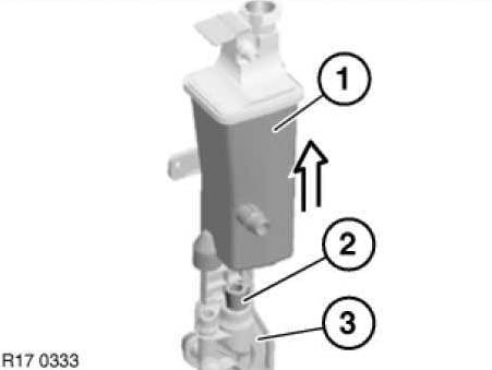 Pull coolant expansion tank (1) upwards out of mounting plate (3).