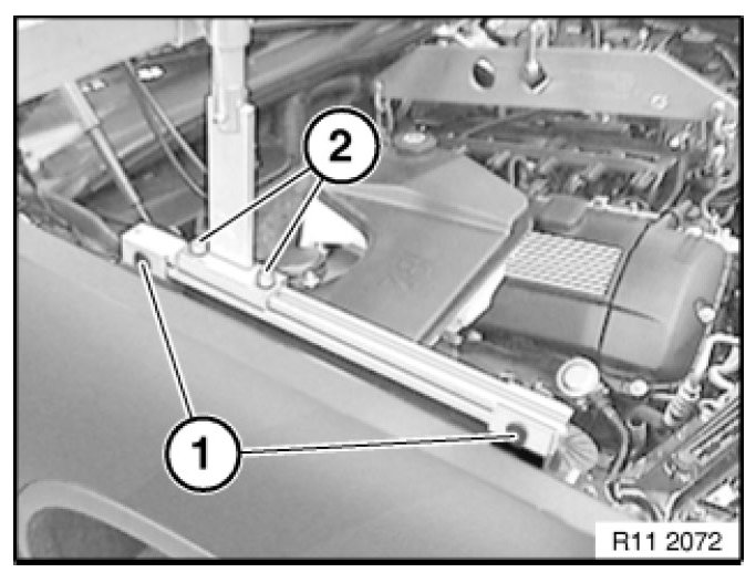 Hold engine hood, unhook damper on hood. Open engine hood fully and reattach damper with special tool 51 2 170 to hood.