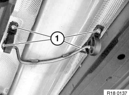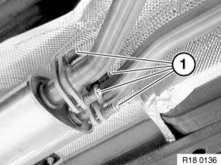 Release screws (1) on rubber mounts and remove intermediate muffler.