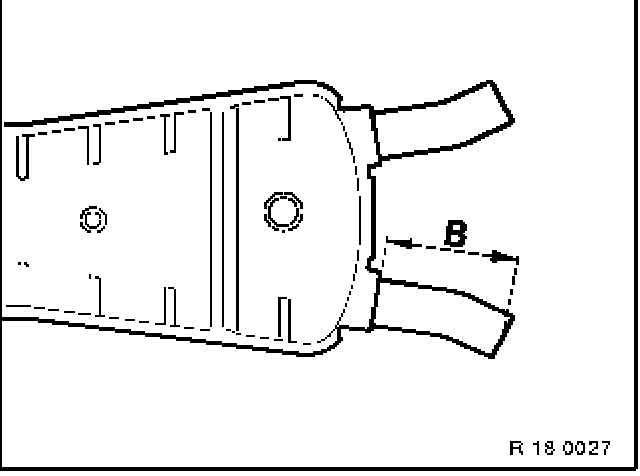 Cut through and deburr both exhaust pipes at determined point between catalytic converter and intermediate muffler with special tool 00 2 210.