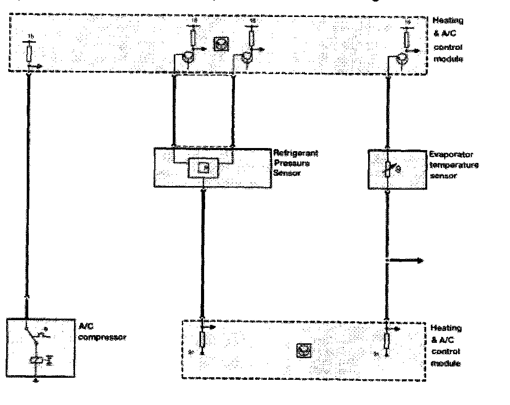 If the evaporator temperature is above 37°F (3°C), and the refrigerant pressure sensor indicates acceptable pressure, the control panel/module then signals the ECM that it is about to activate the compressor. The IHKA module will then activate the compressor if a cancellation signal is not received from the ECM.