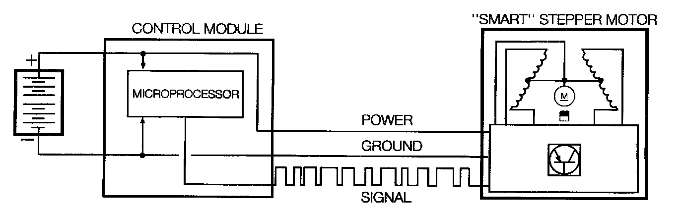 Notice that this 3-wire arrangement (referred to as the M-Bus) allows the control module to operate the motor using only 1 signal circuit instead of the 4 control circuits used previously.
