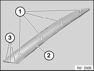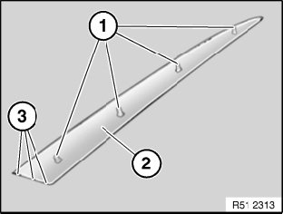 Pins (1) and mounts (3) of decorative strip (2) must not be damaged.