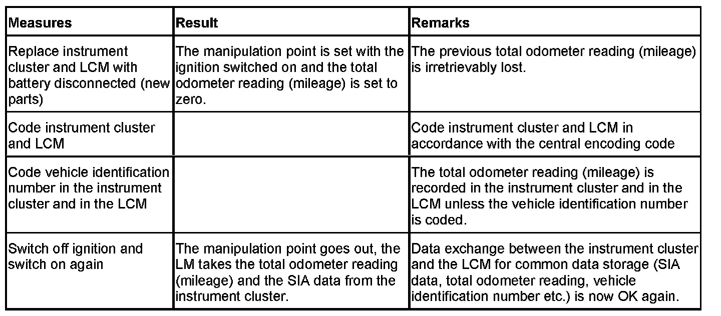 The four cases described in the following show under which circumstances which steps must be taken to ensure correct replacement of the instrument cluster electronics.