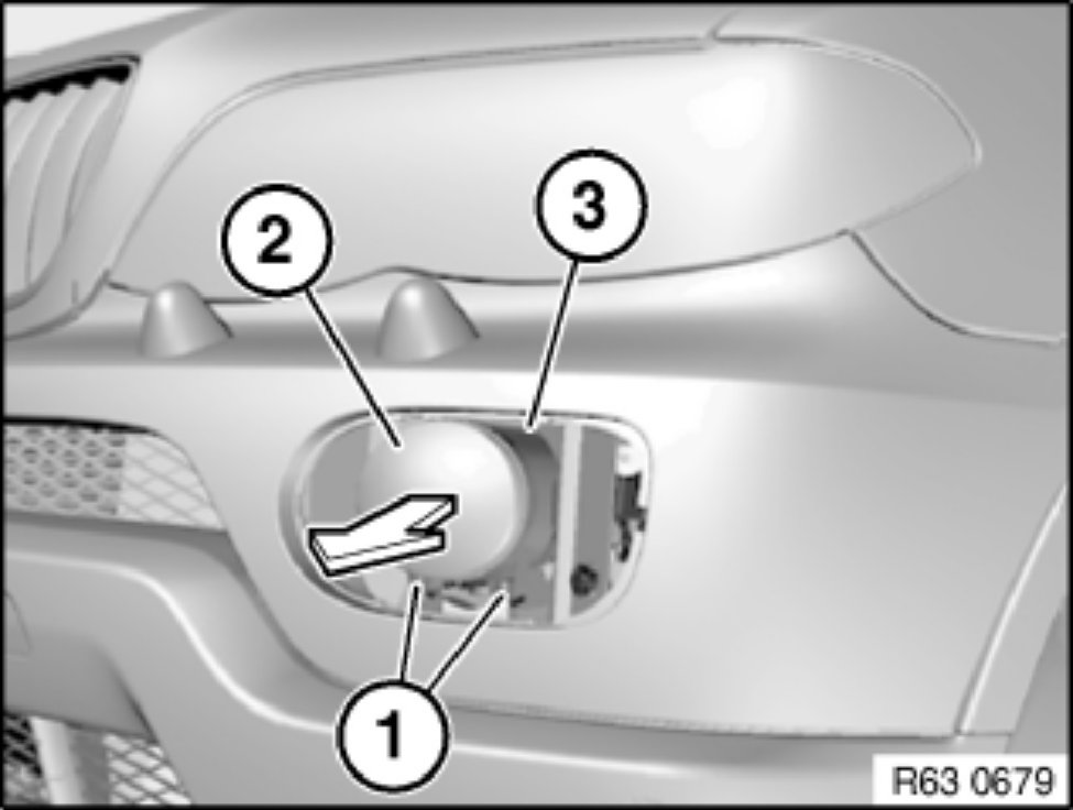 Pull out fog lamp (2), unlock and disconnect plug connection. Set fog lamp (2) down.