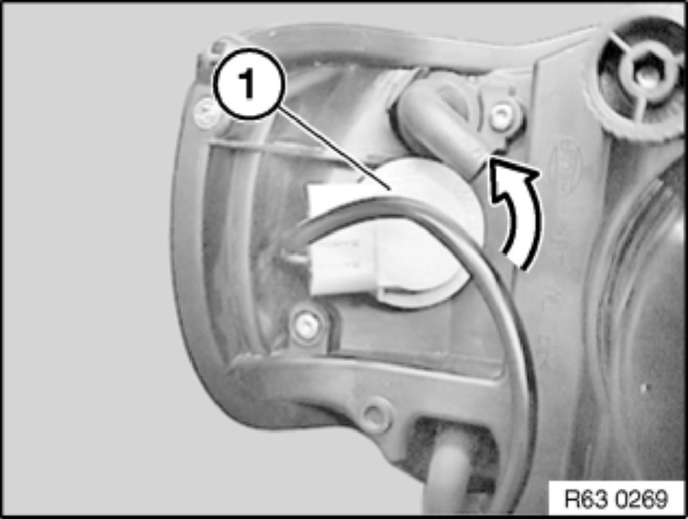 Turn bulb holder (1) through approx. 90 degrees in direction of arrow and remove.