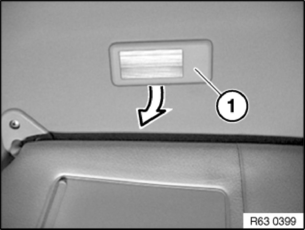 Lever front mirror light (1) in direction of arrow.