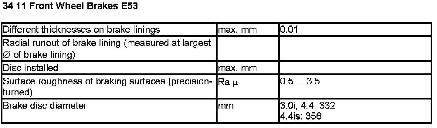 In case of M vehicle and perforated brake discs new brake pads may only be installed if the brake disc thickness is greater than the minimum brake disc thickness (MIN TH).