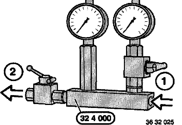 Detach pressure line from pump and connect special tool 32 4 000, refer to Notes on use.