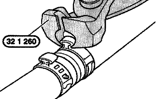 Attach hook fastener and press ear together with special tool 32 1 260.