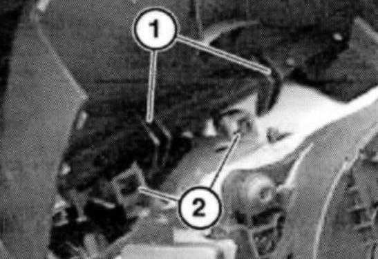 Insert hook (1) in mounts (2).