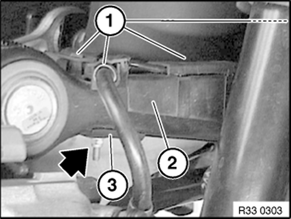 Note: If the control arm is detached from the rear axle carrier, it is necessary after reinstallation to carry out a wheel/chassis alignment check.